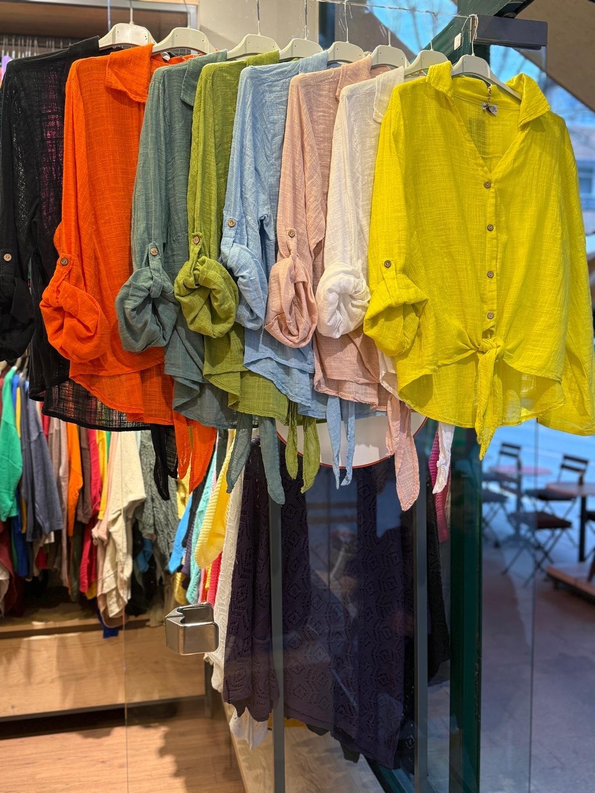 İthal Bağlamalı Keten Gömlek