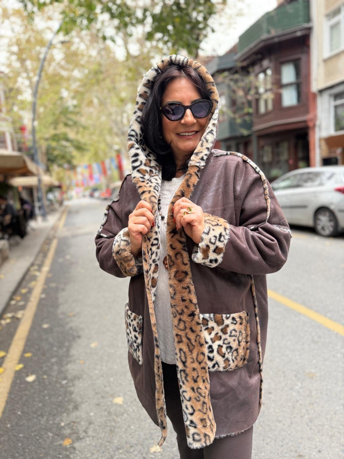 İthal İçi Leopar Kürk Napa Kaban