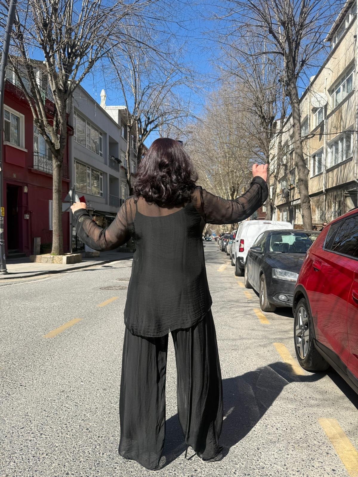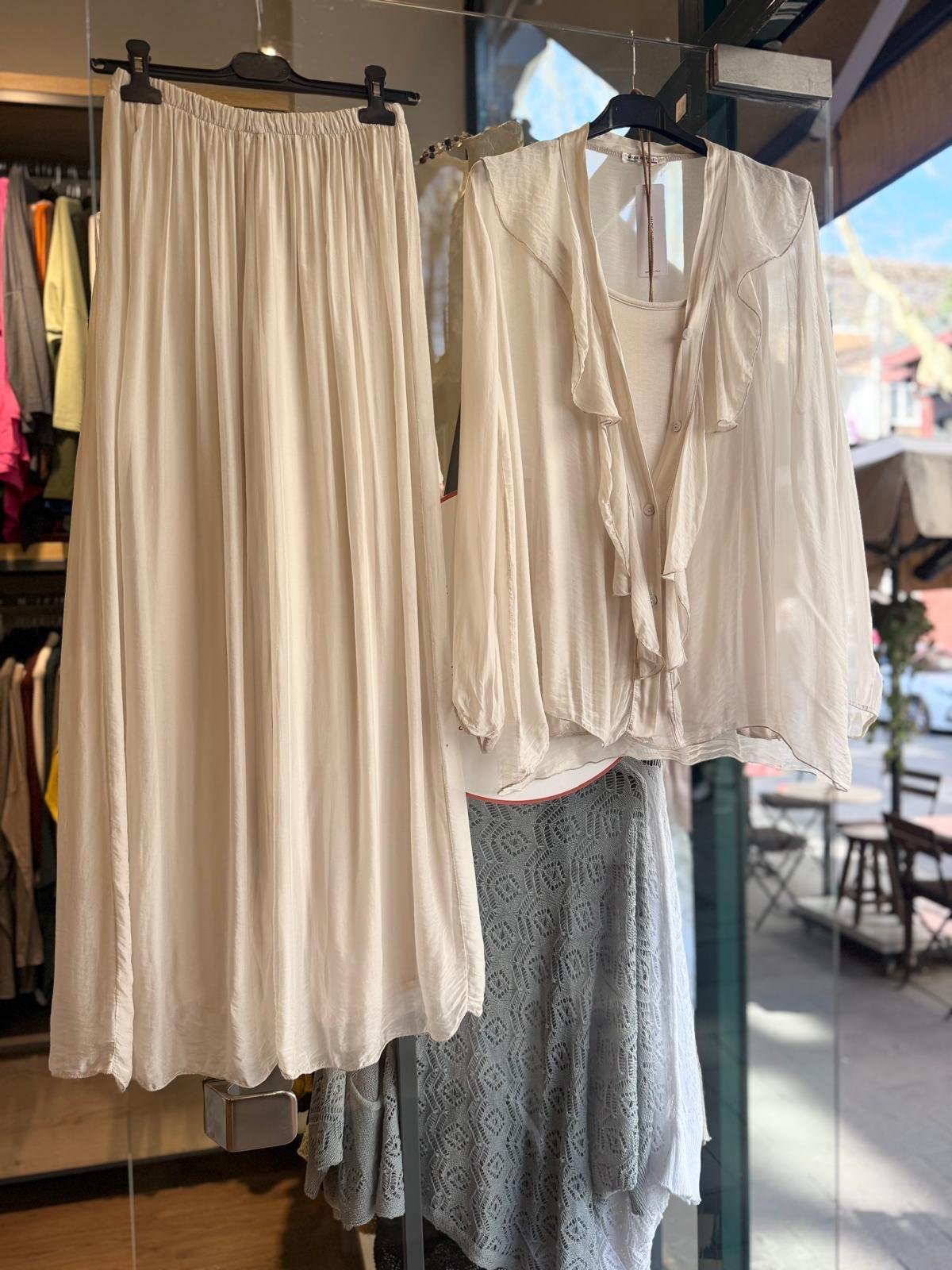 İpek üçlü takım Bluz Sırt göğüs çevre 120 cm Basen çevre 140cm Boy 71 cm