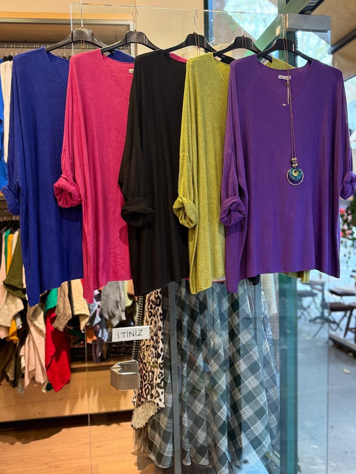 İthal Oversize V Yaka Kolyeli Triko