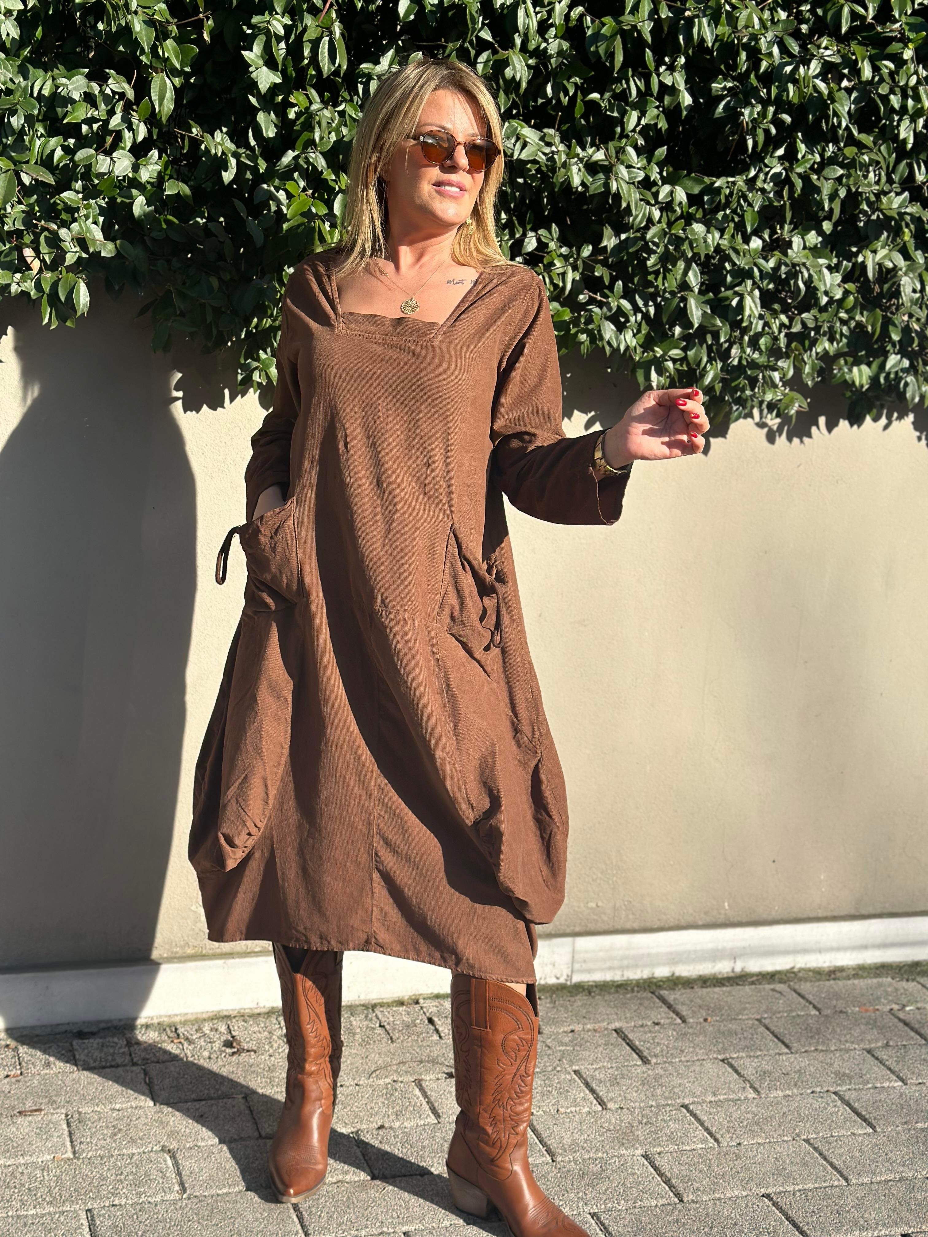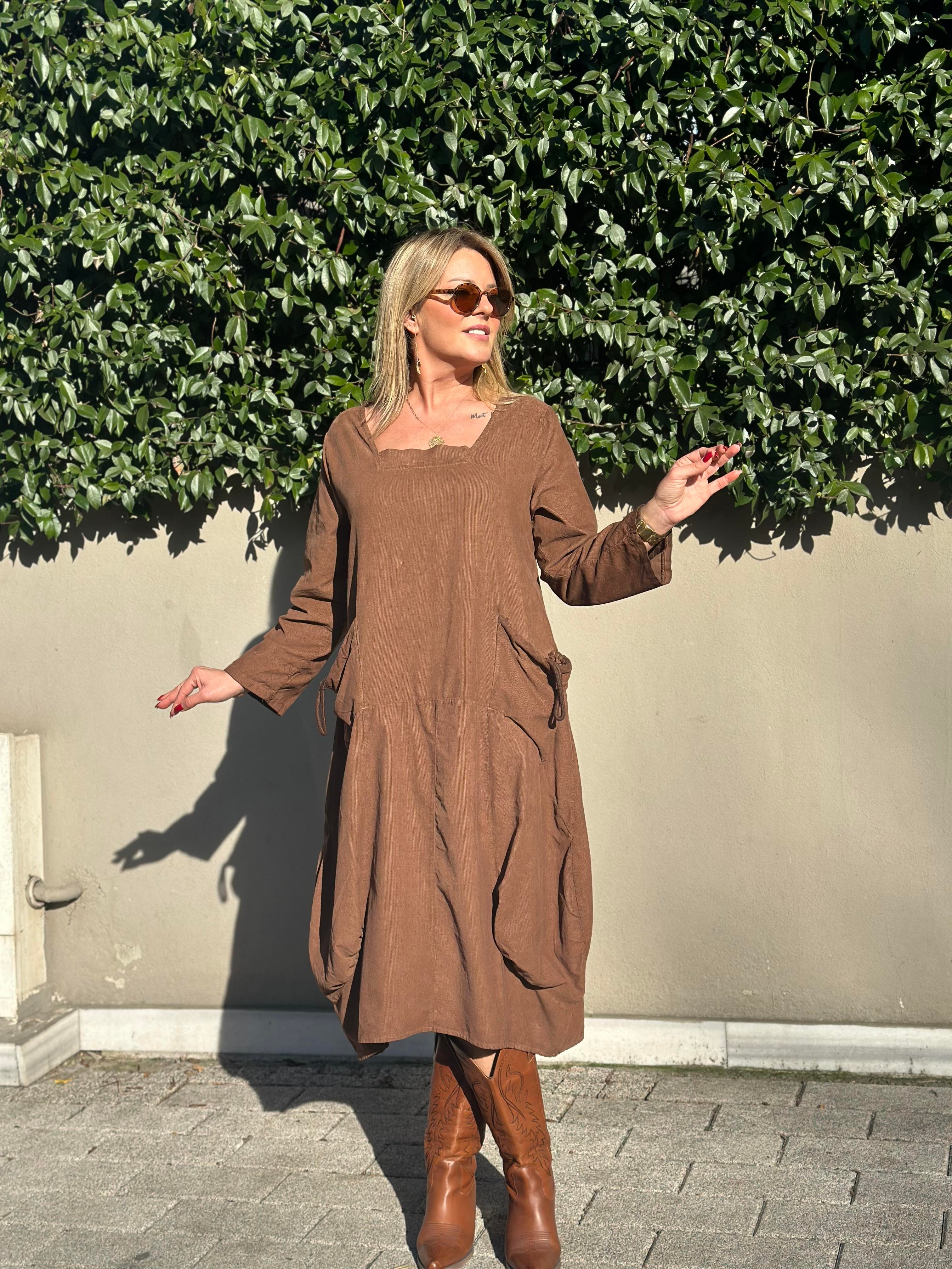 Kare Yaka Kadife Elbise
