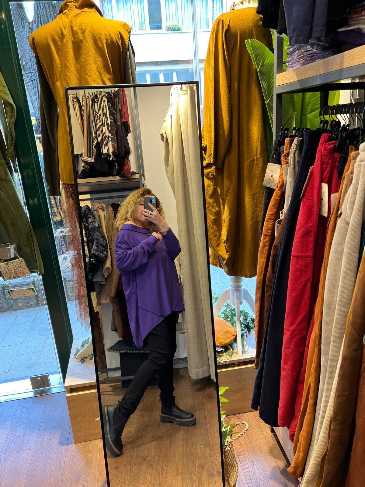 Kayık Yaka Salaş Organik Triko Bluz