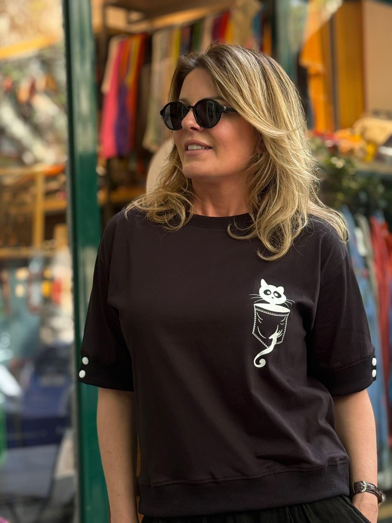 Kedi Cepte Ribanalı Bluz