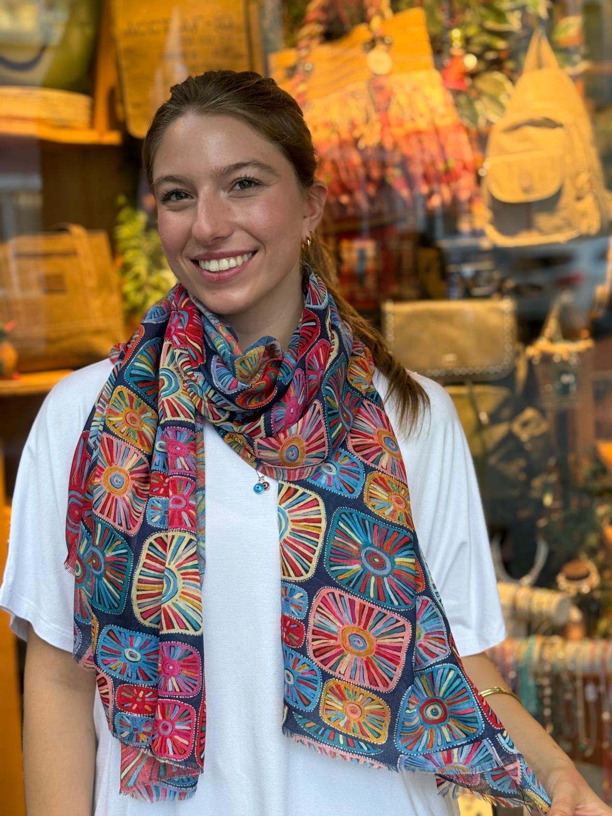 Lacivert Kare Desenli Pamuklu Şal
