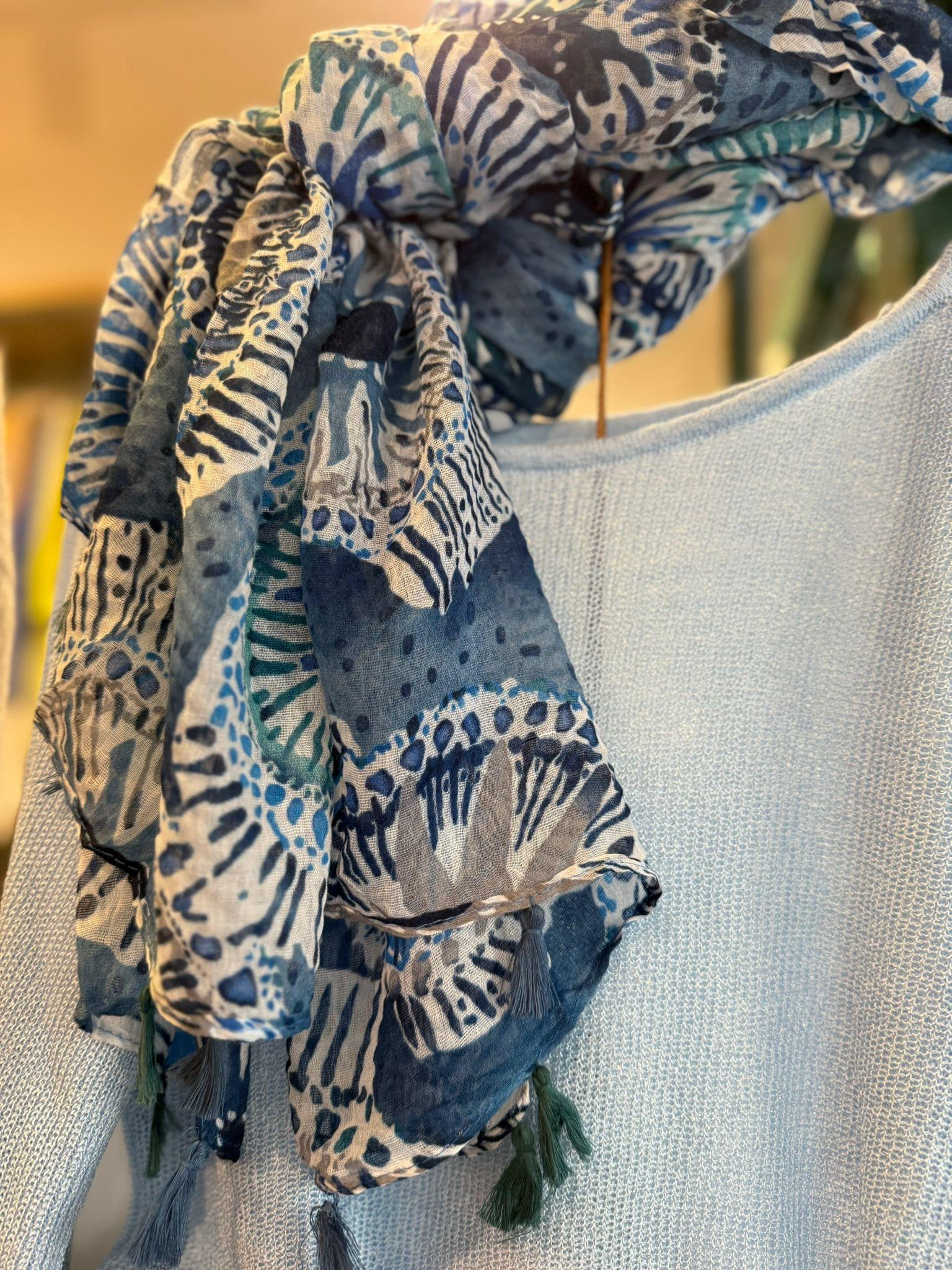 Mavi Göz Desenli Pamuklu Şal