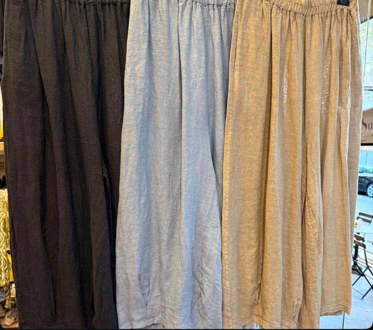 Oversize İthal Paçası Dikişli Keten Pantolon