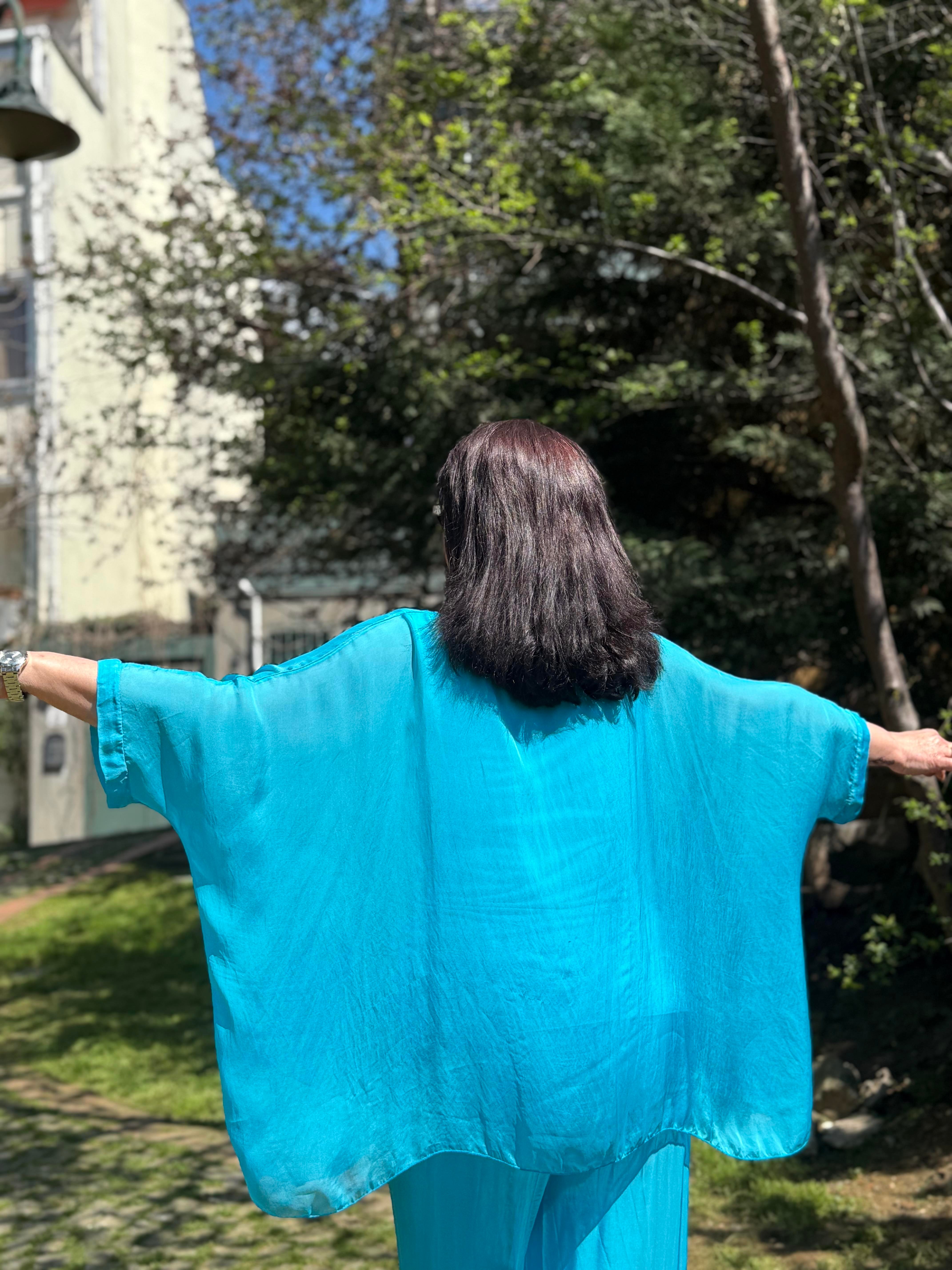 İpek bluz Sırt göğüs çevre 220 cm Basen çevre 220cm Boy 65 cm Yan boy 90 cm