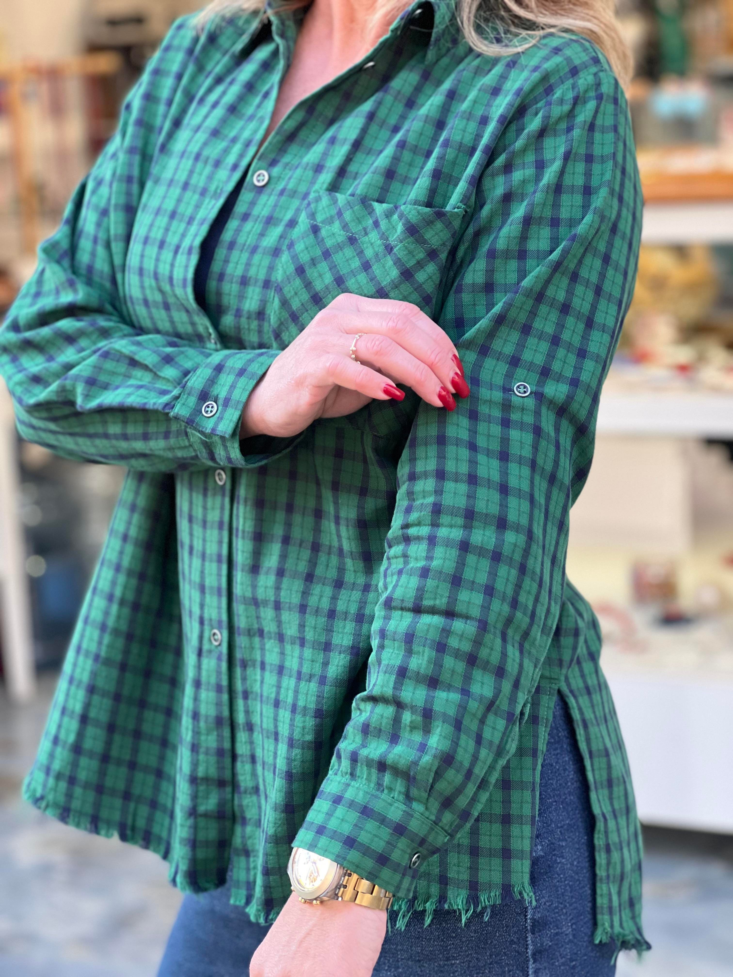 Yeşil ekose gömlek ölçüleri S beden Sırt göğüs çevre 124 cm Basen çevre 120cm Ön boy 70 cm Arka boy 74 cm Yırtmaç Ön 15 cm Arka 18 cm